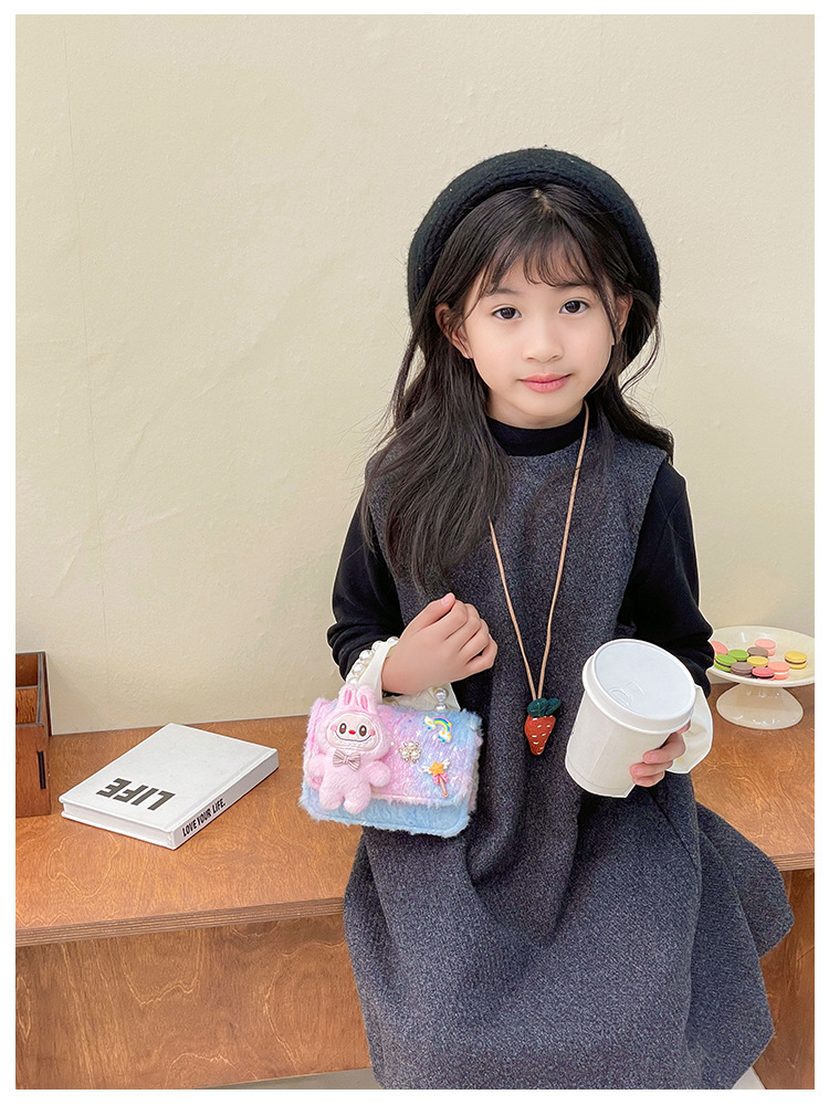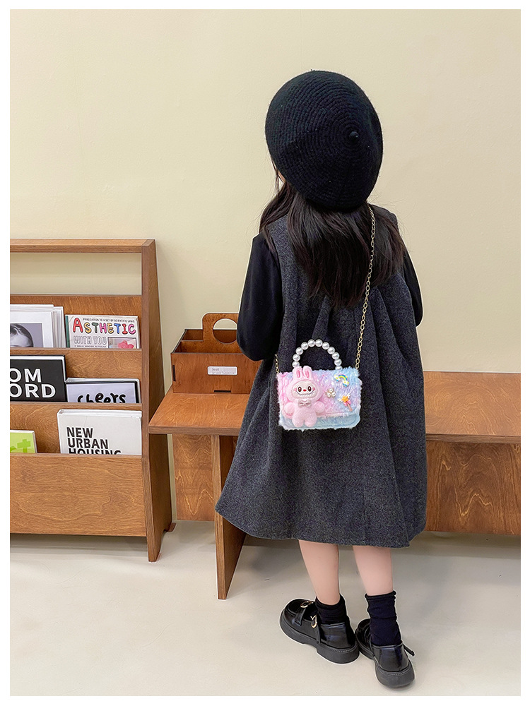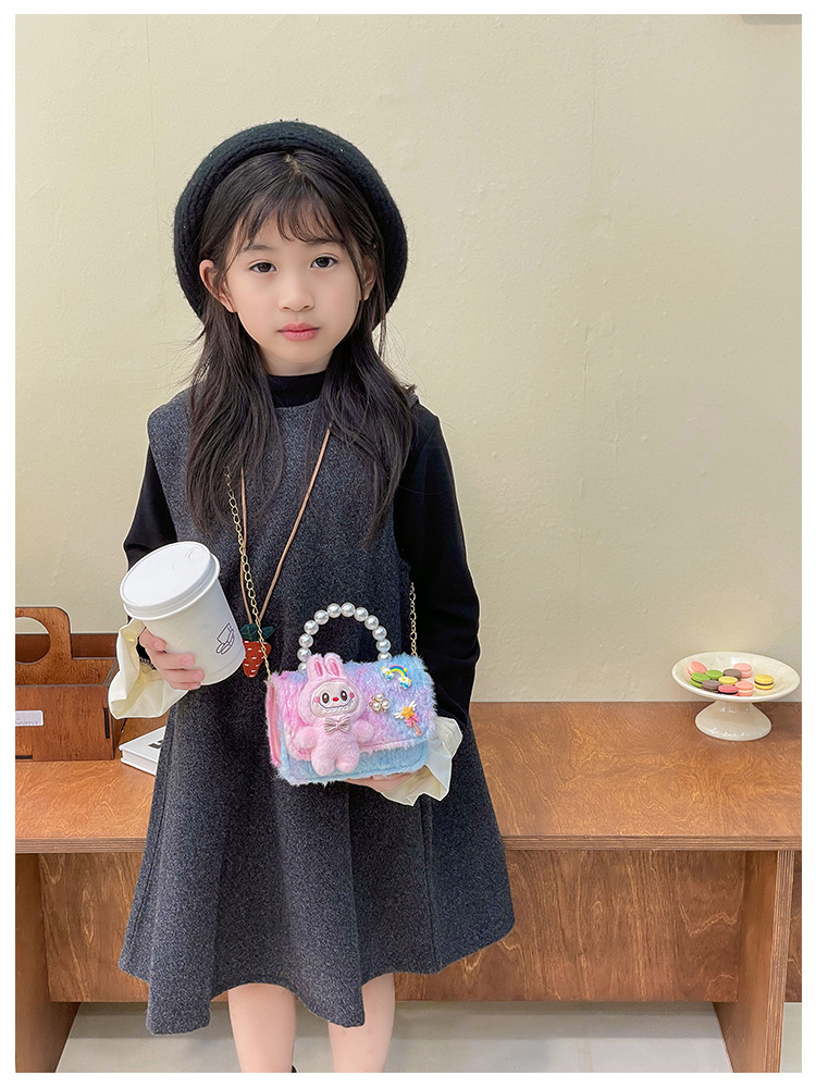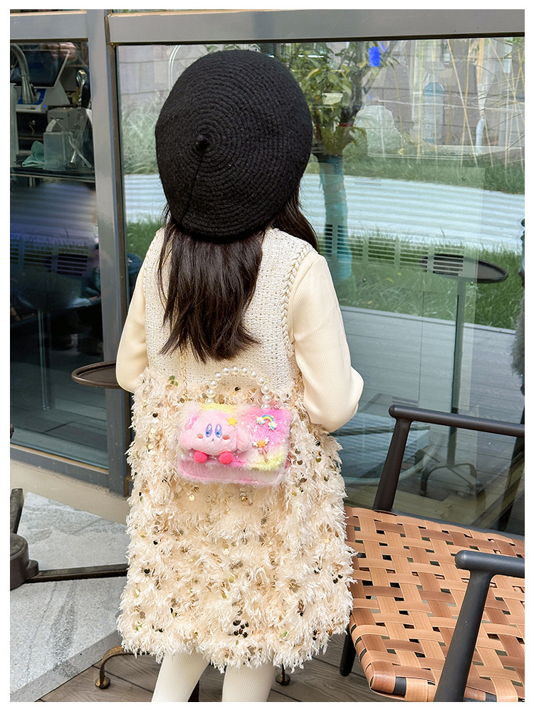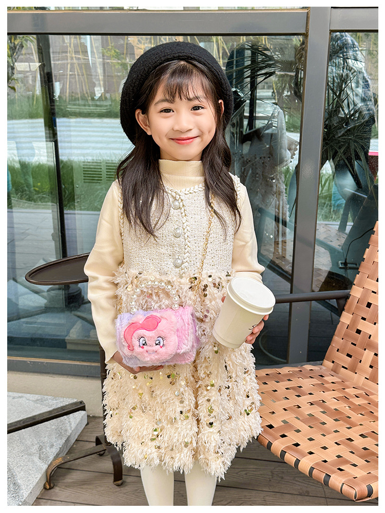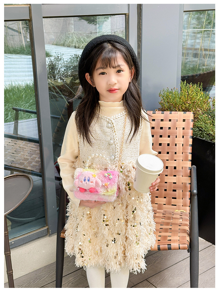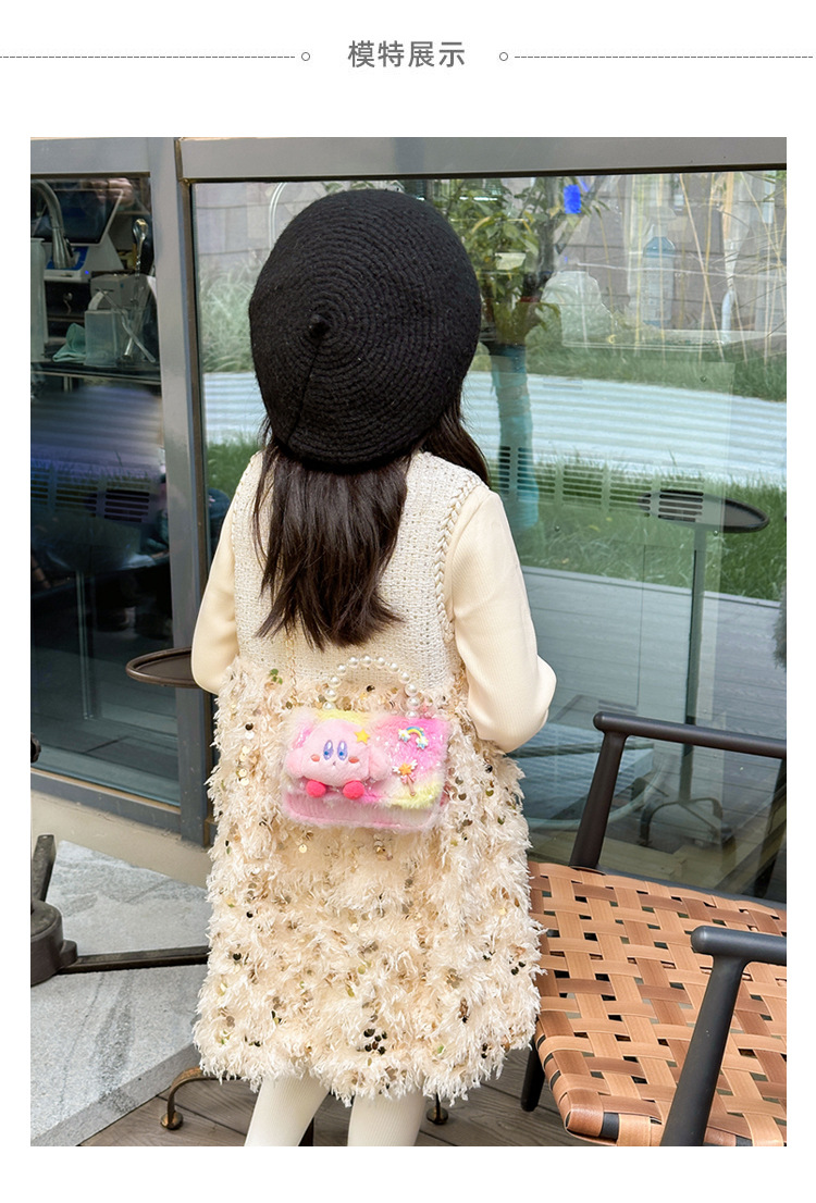 2025 nuevo bolso de niñas de estilo extranjero, bolso de hombro para niños, bolso de peluche, bolso de mano para niñas