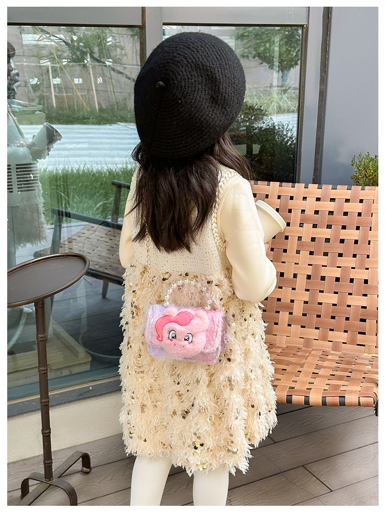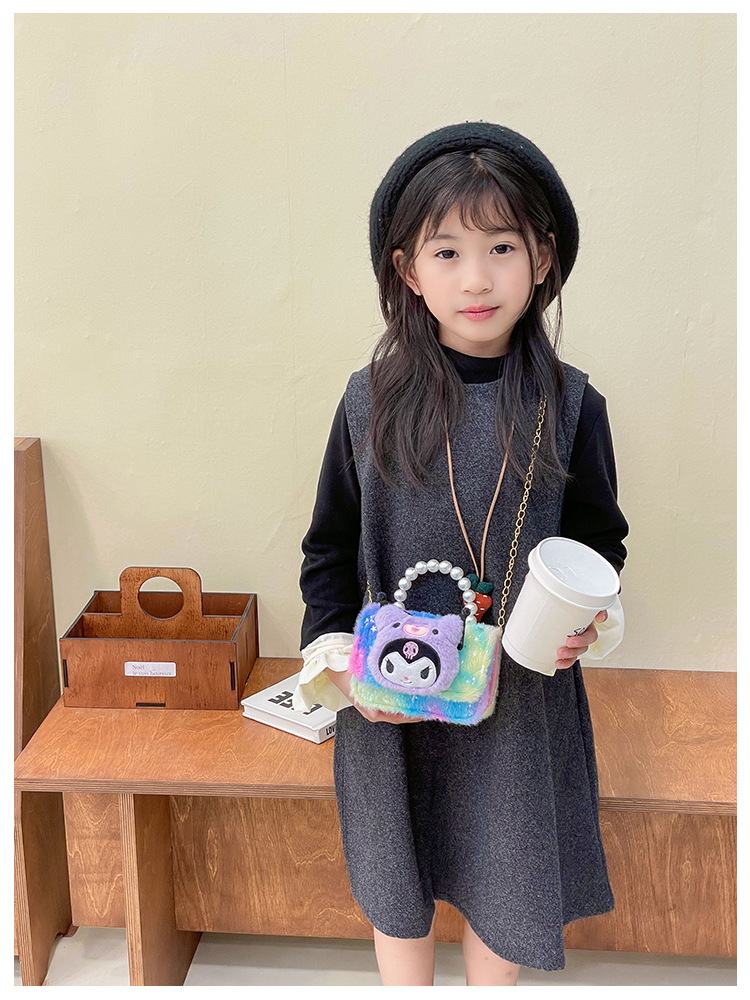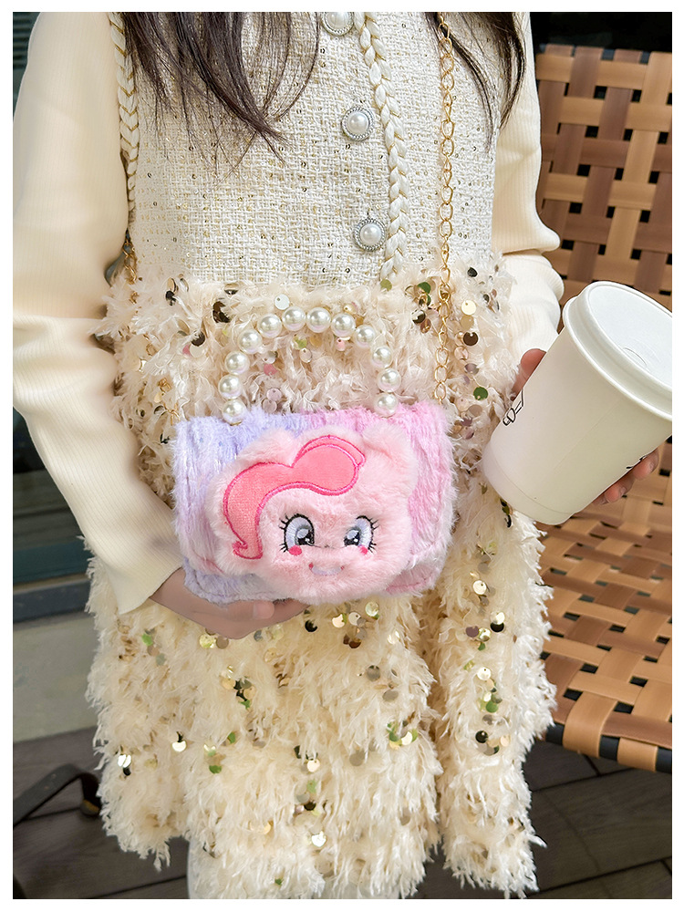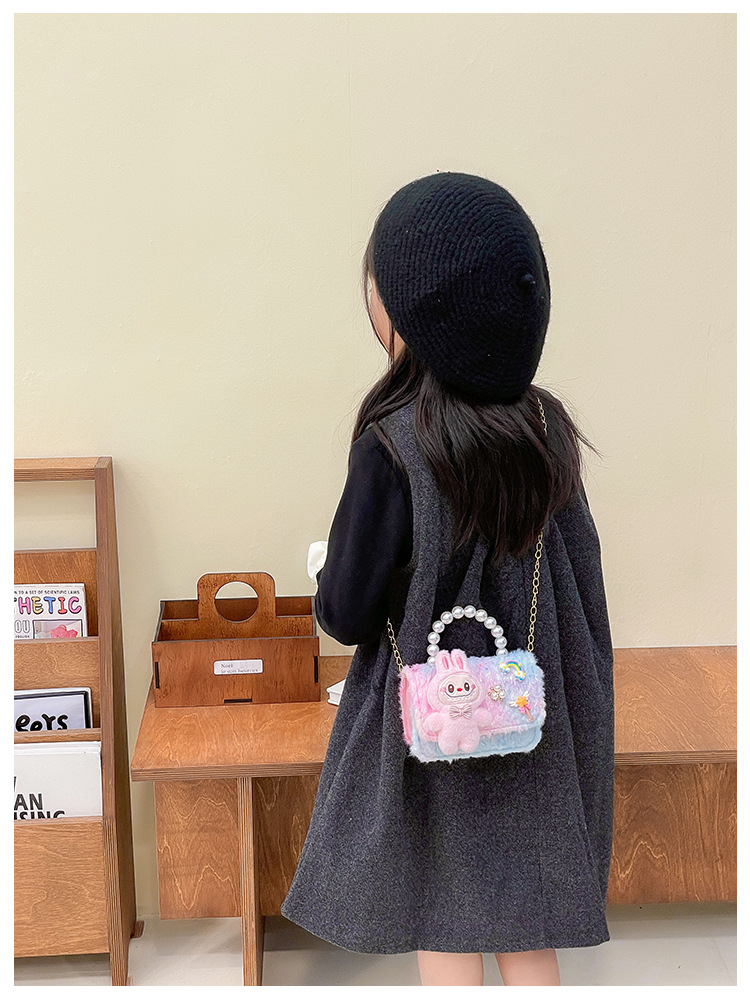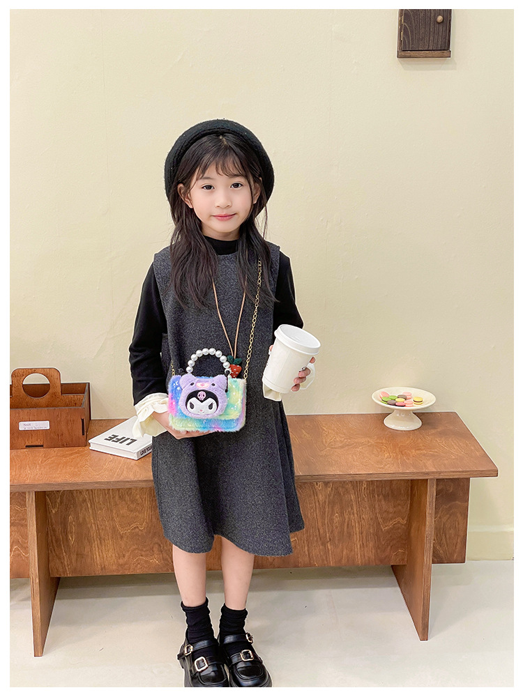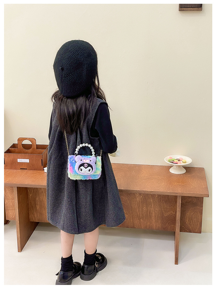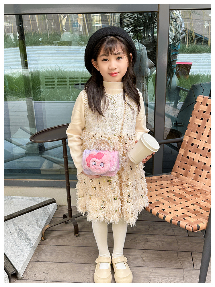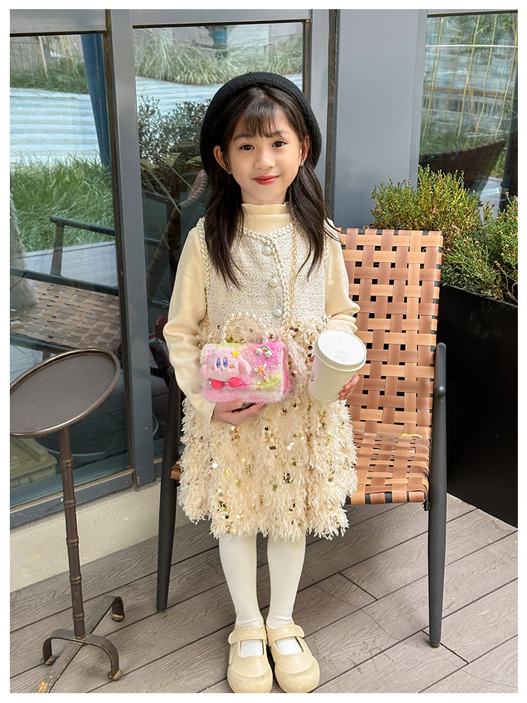 2025 nuevo bolso de niñas de estilo extranjero, bolso de hombro para niños, bolso de peluche, bolso de mano para niñas