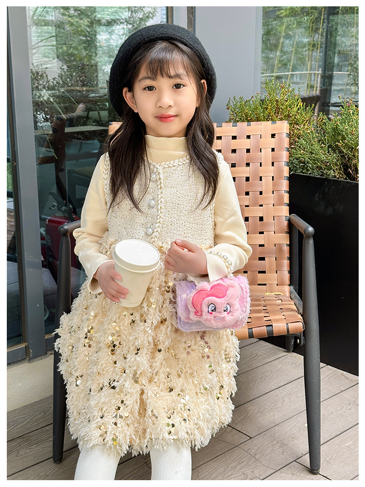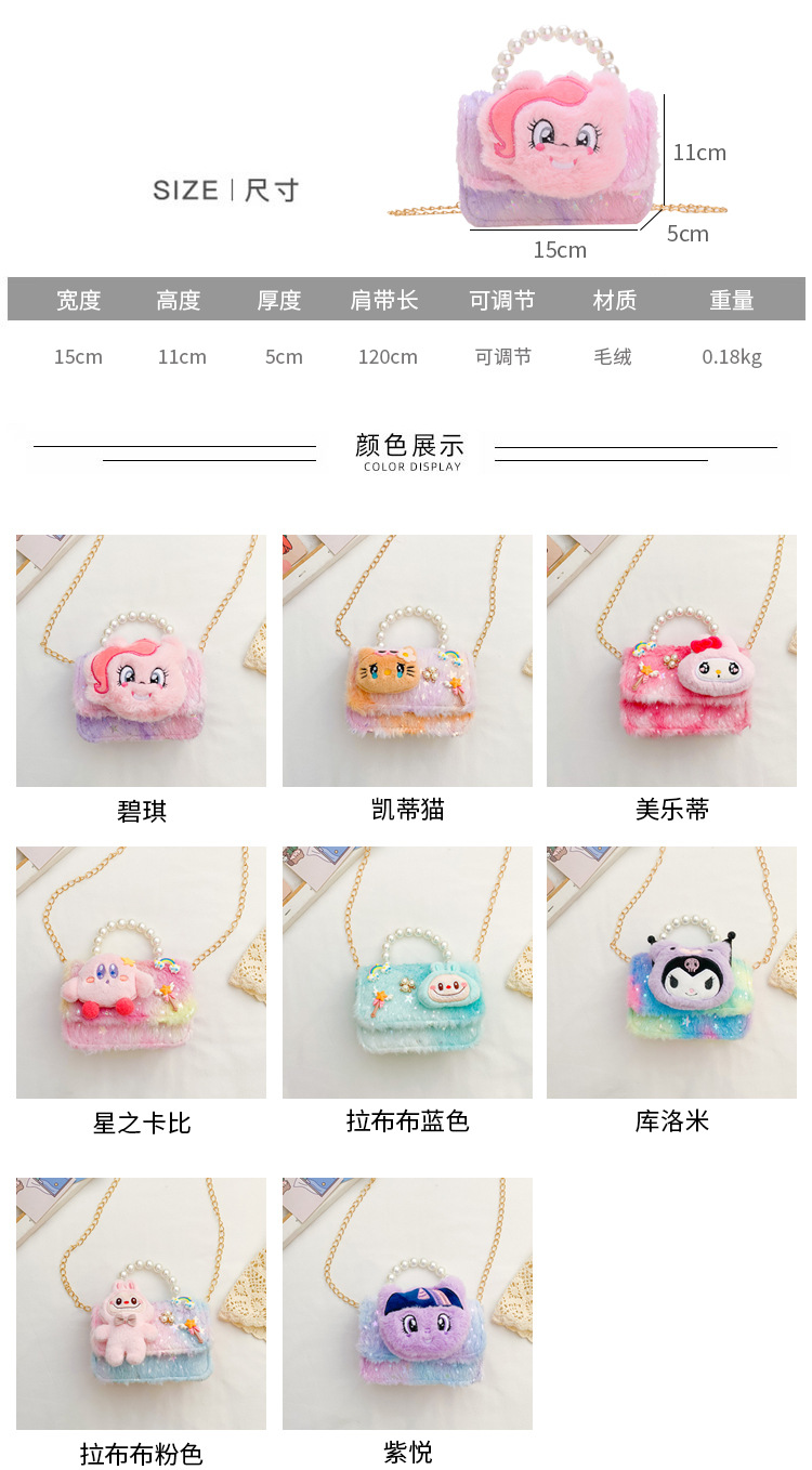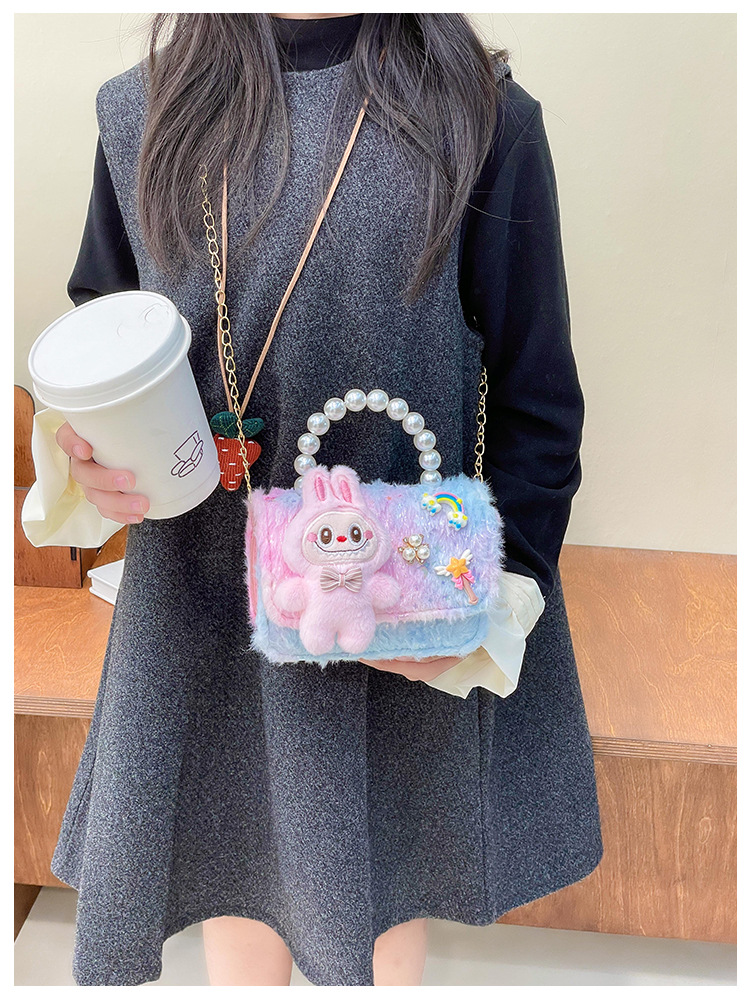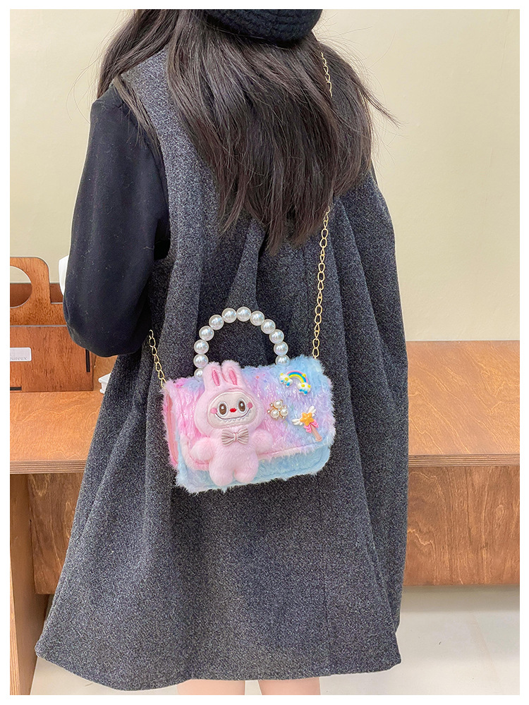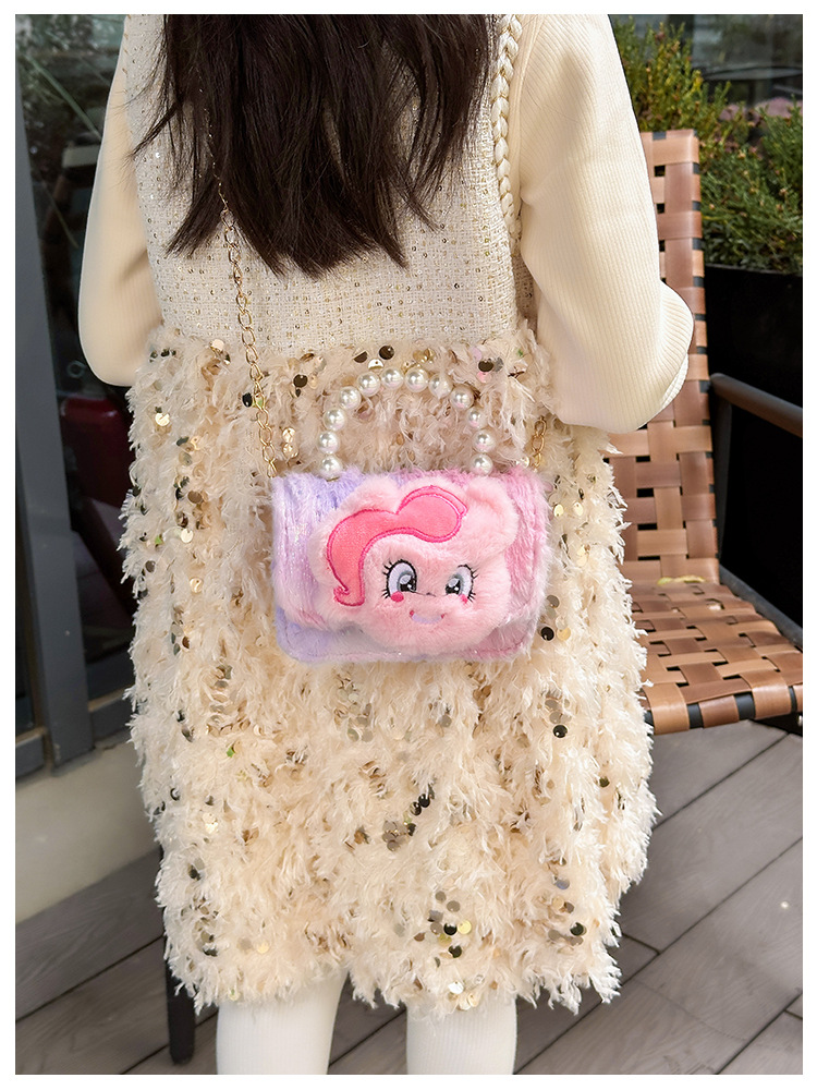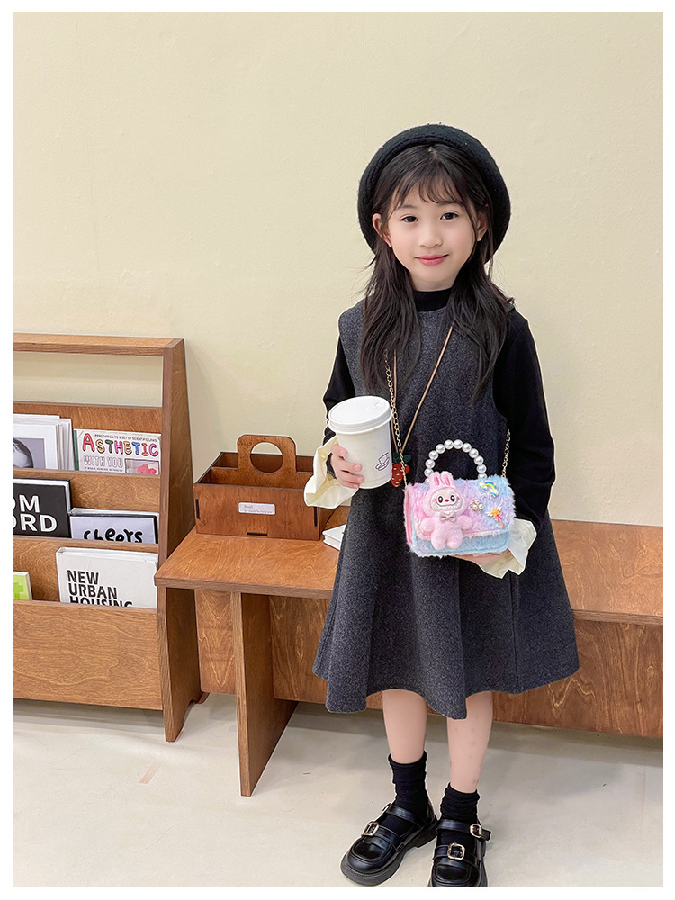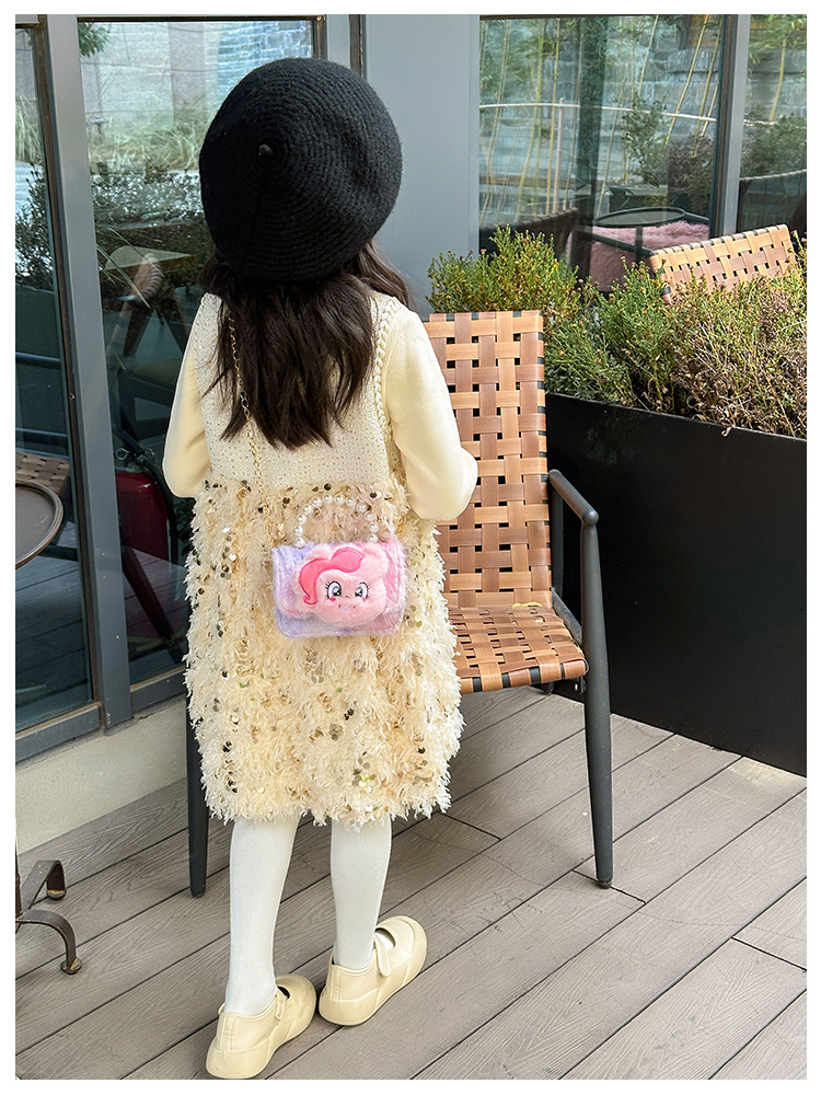 2025 nuevo bolso de niñas de estilo extranjero, bolso de hombro para niños, bolso de peluche, bolso de mano para niñas