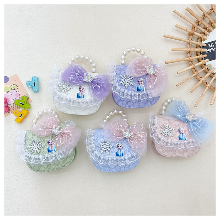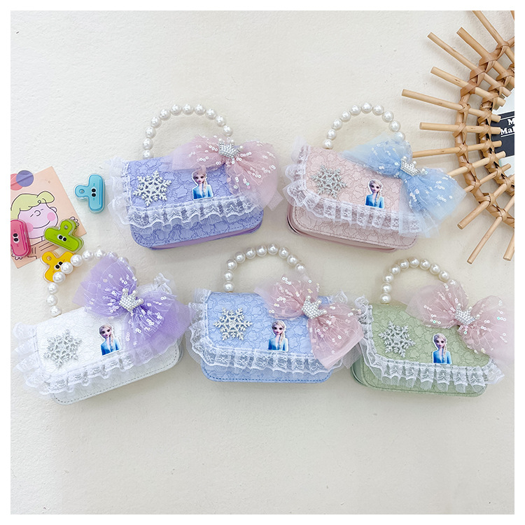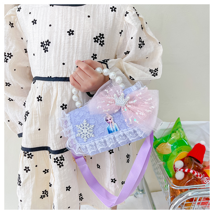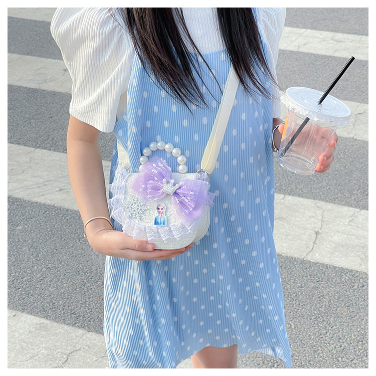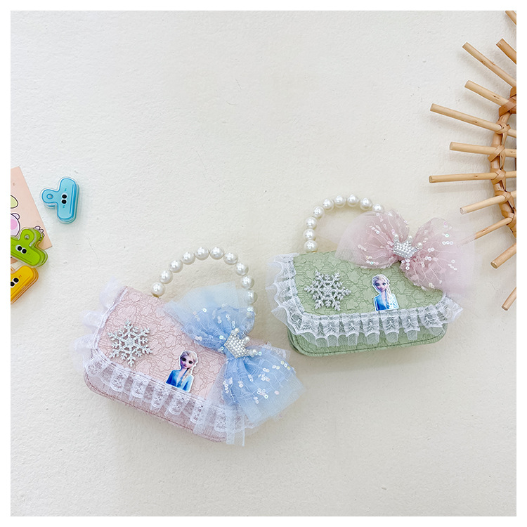 儿童包新款卡通公主珍珠手提包蕾丝蝴蝶结女童单肩包零钱斜挎包潮