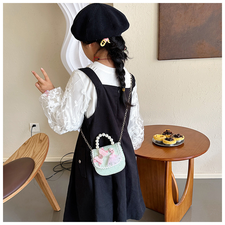 新款洋气儿童包包女童亮片斜挎包韩版珍珠手提包小女孩零钱包