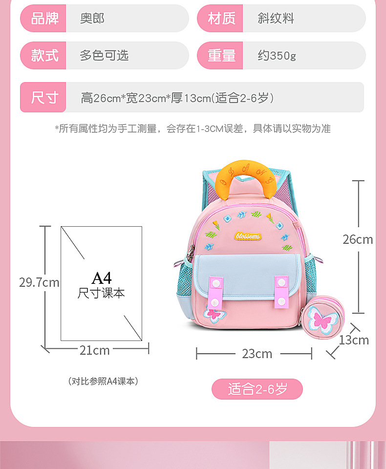 奥郎新款幼儿园书包男孩女孩3-6岁卡通可爱超轻大容量休闲双肩包