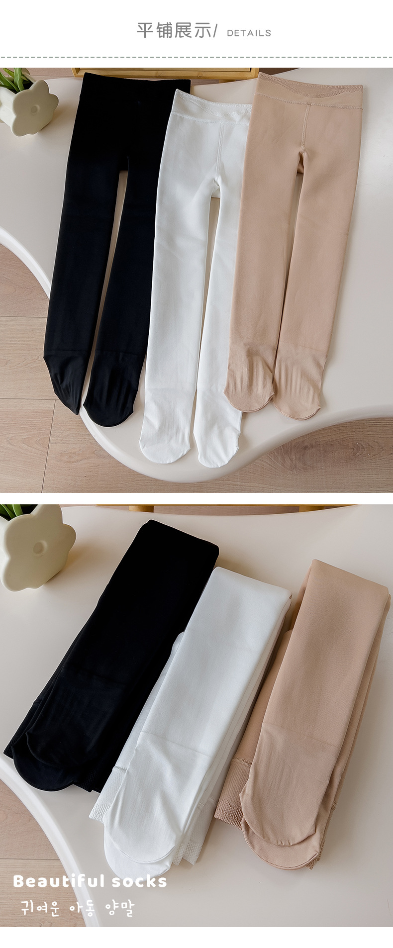 Pantimedias de otoño e invierno para niños forradas de vellón engrosadas niñas anti-pilling color sólido agua luz recortada ballet danza de fondo Calcetines