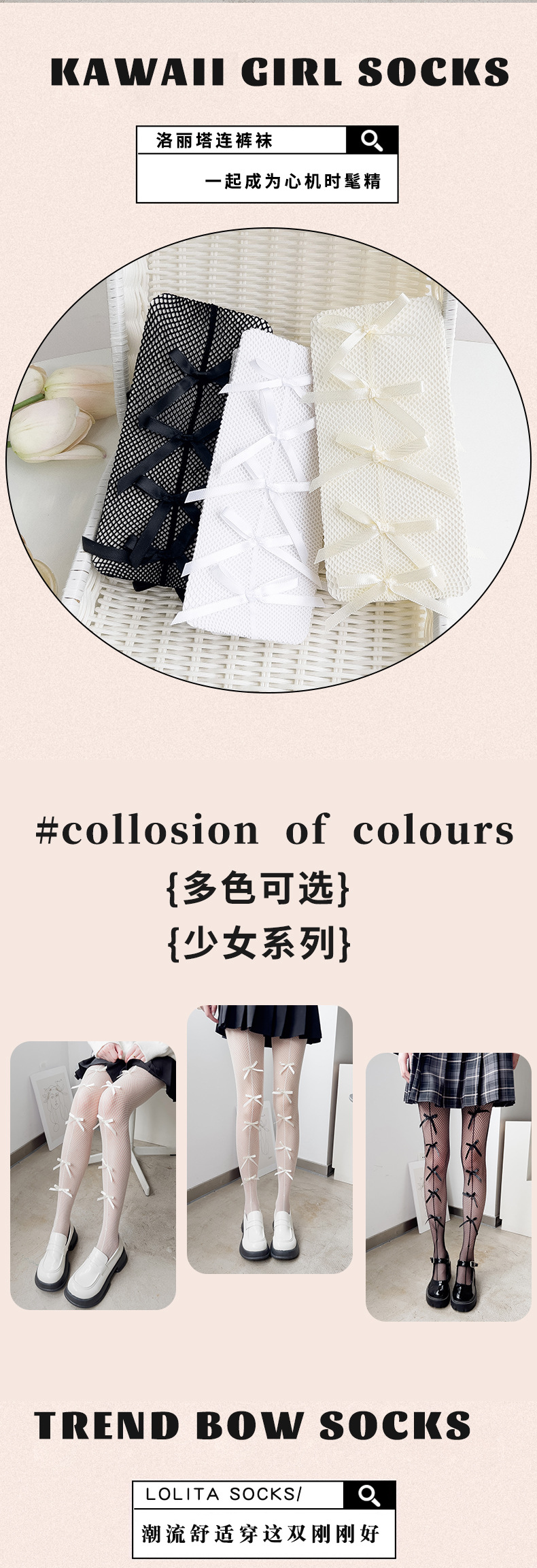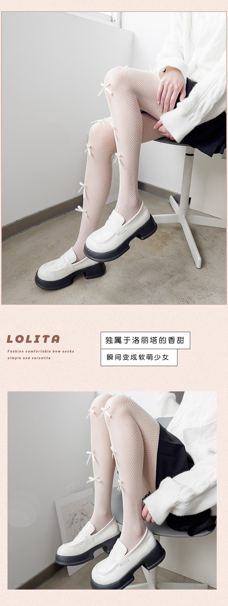 Verano fino blanco arco malla calcetines japonés Lolita Millennium estilo versátil blanco seda hueco pantimedias polainas