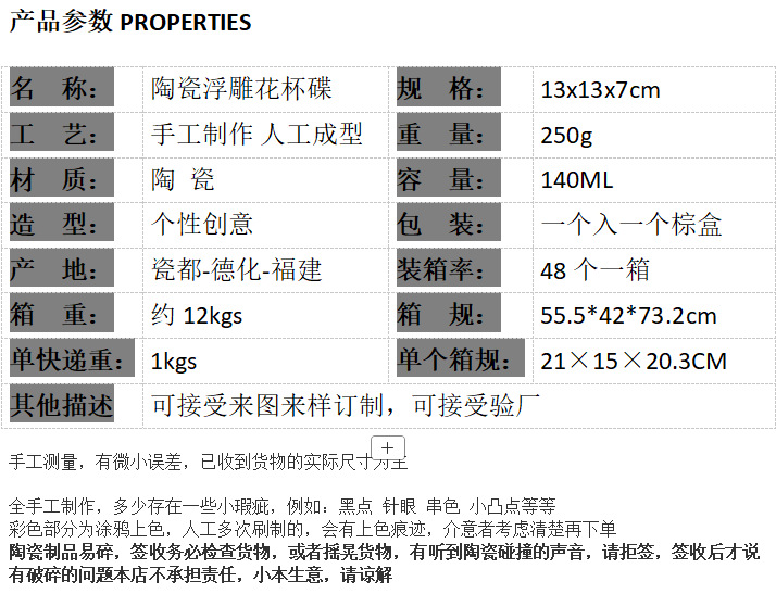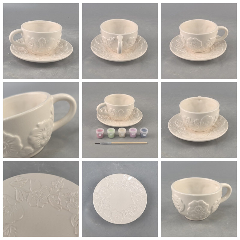 | Color | Cerámica relieve flor taza y plato |