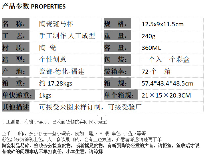 | Color | Taza cerámica perezosa, taza cerámica zebra, taza de agua perezosa |