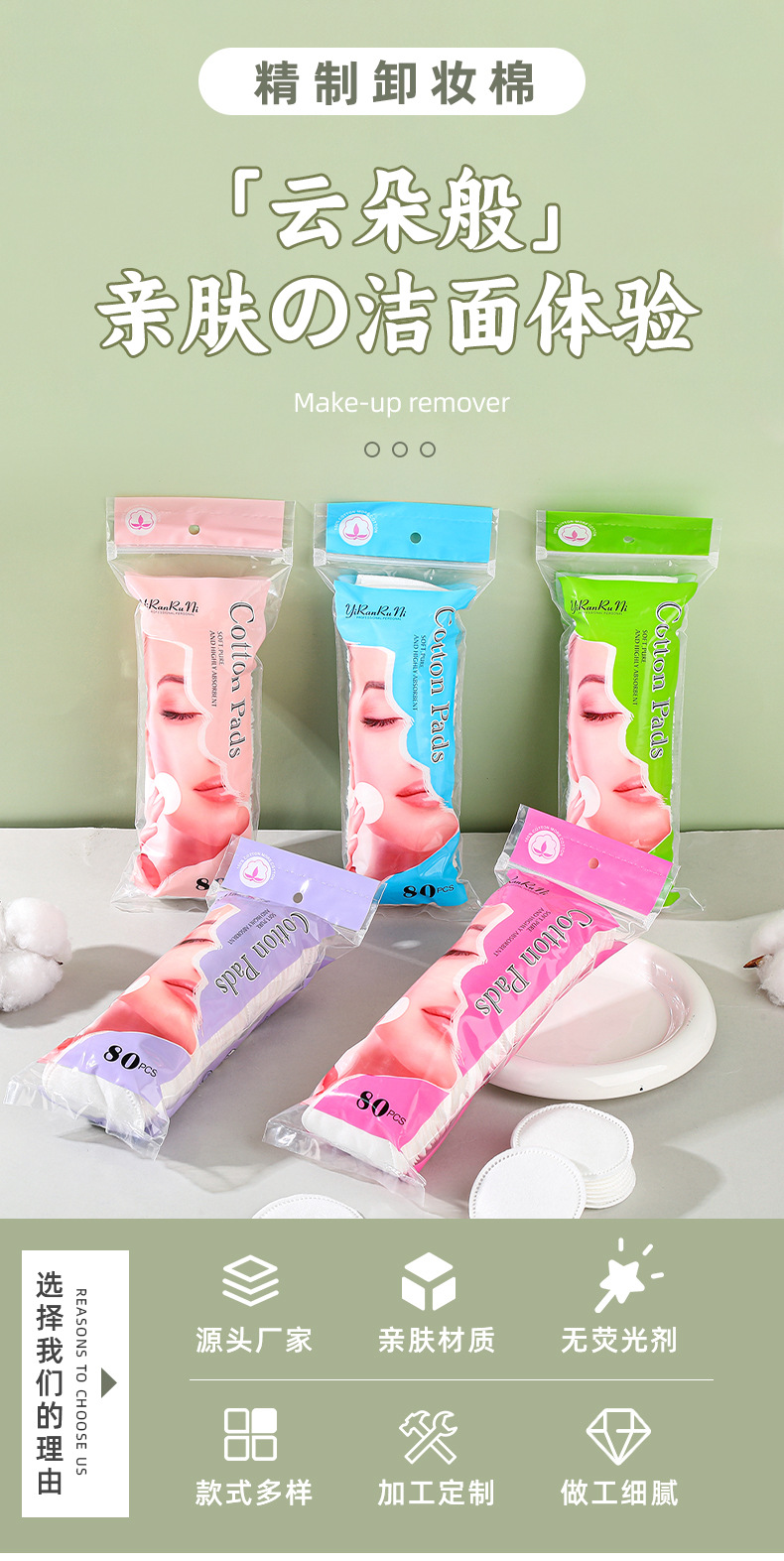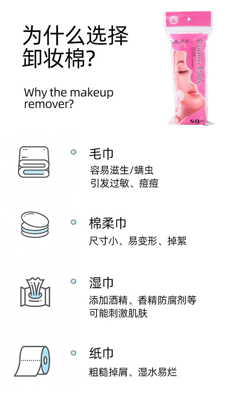 | Nombre del producto | Bolsa auto-sellada de algodón 80 piezas de maquillaje |