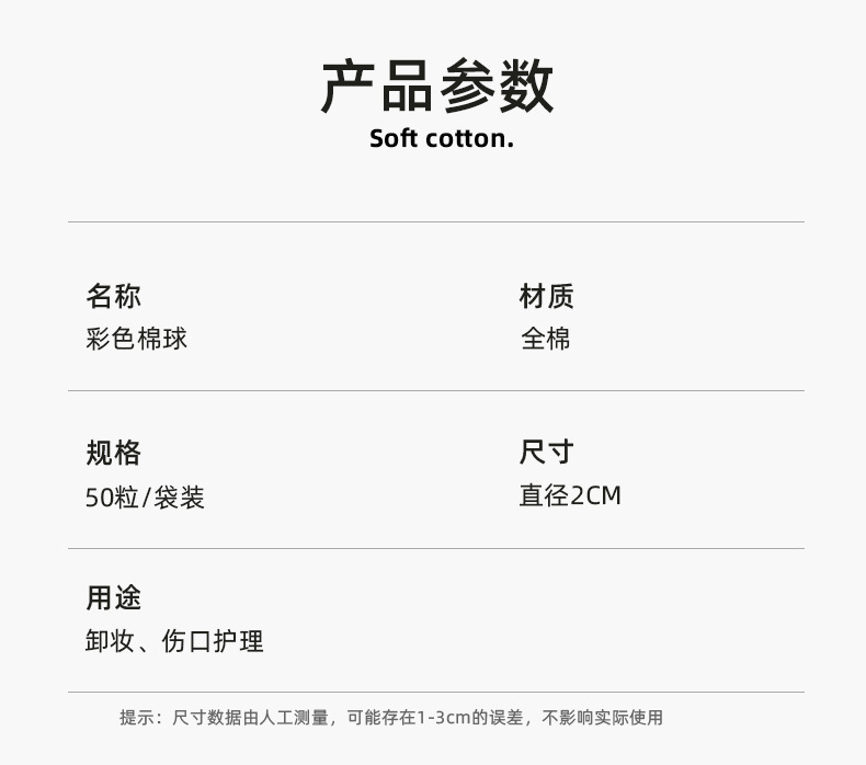 | Clasificación de colores | 50 bolas de algodón coloridas |