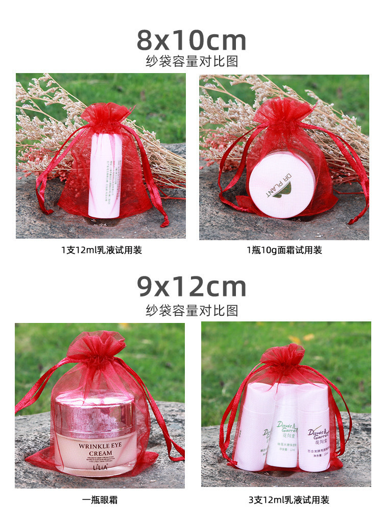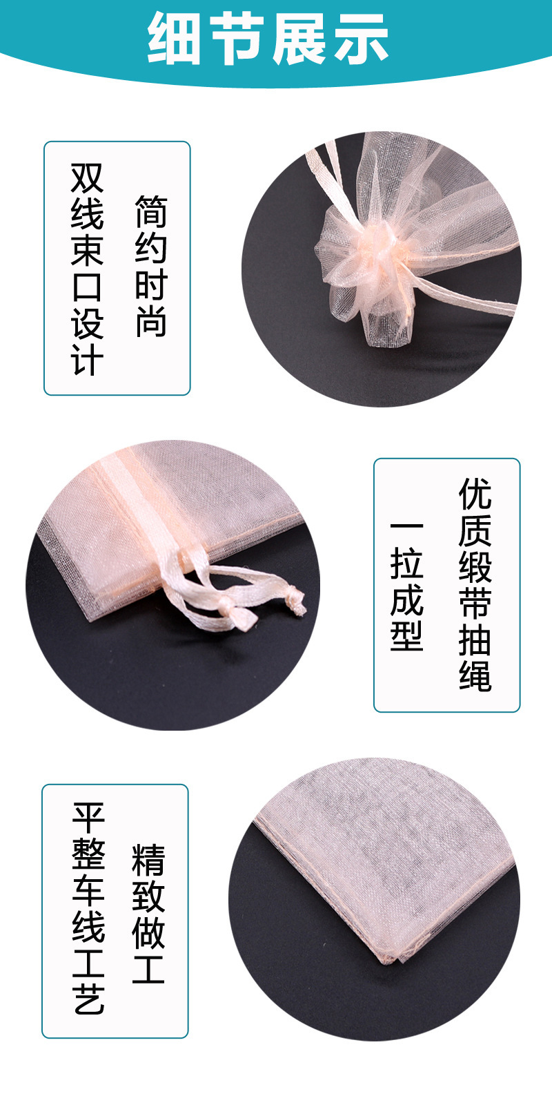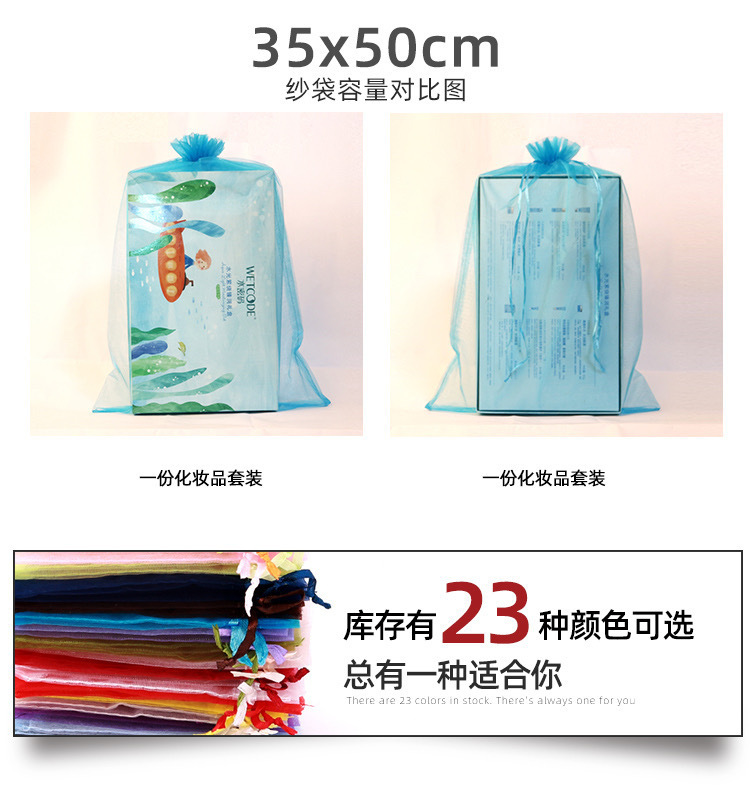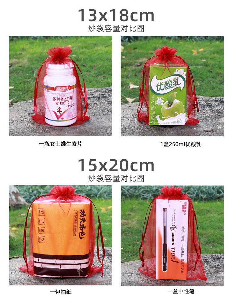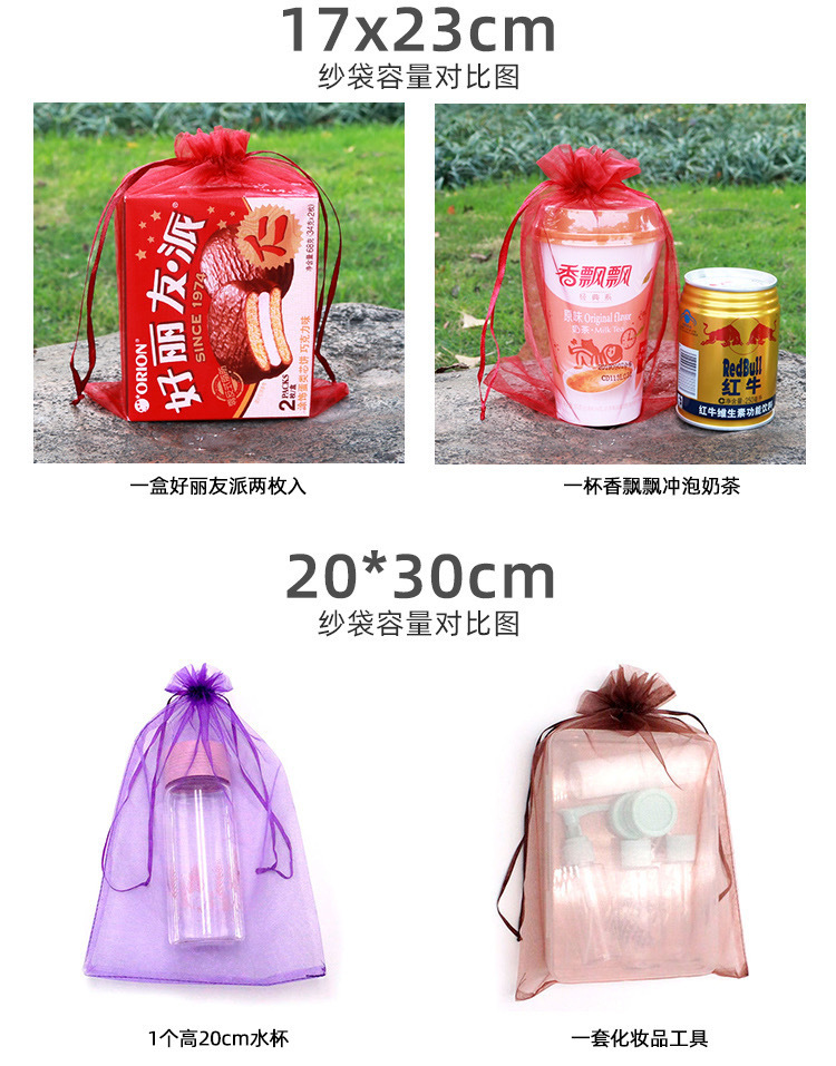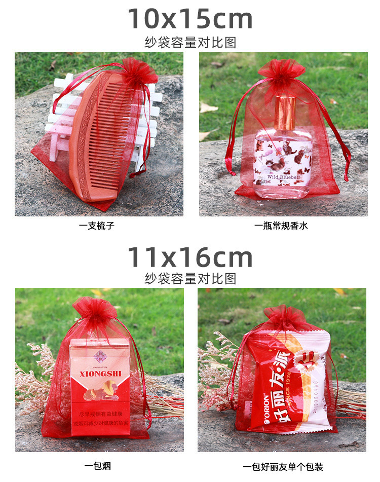 | Especificaciones y modelos | 香槟纱袋;5*7cm【请拍100个的倍数】,香槟纱袋;7*9cm,香槟纱袋;8*10cm,香槟纱袋;9*12cm,香槟纱袋;11*16cm,香槟纱袋;13*18cm,香槟纱袋;15*20cm,香槟纱袋;17*23cm,香槟纱袋;20*30cm,香槟纱袋;25*35cm,香槟纱袋;30*40cm,香槟纱袋;35*50cm,随机混色纱袋;5*7cm【请拍100个的倍数】,随机混色纱袋;7*9cm,随机混色纱袋;8*10cm,随机混色纱袋;9*12cm,随机混色纱袋;11*16cm,随机混色纱袋;13*18cm,随机混色纱袋;15*20cm,随机混色纱袋;17*23cm,随机混色纱袋;20*30cm,随机混色纱袋;25*35cm,随机混色纱袋;30*40cm,随机混色纱袋;35*50cm,白色纱袋;5*7cm【请拍100个的倍数】,白色纱袋;7*9cm,白色纱袋;8*10cm,白色纱袋;9*12cm,白色纱袋;11*16cm,白色纱袋;13*18cm,白色纱袋;15*20cm,白色纱袋;17*23cm,白色纱袋;20*30cm,白色纱袋;25*35cm,白色纱袋;30*40cm,白色纱袋;35*50cm,黑色纱袋;5*7cm【请拍100个的倍数】,黑色纱袋;7*9cm,黑色纱袋;8*10cm,黑色纱袋;9*12cm,黑色纱袋;11*16cm,黑色纱袋;13*18cm,黑色纱袋;15*20cm,黑色纱袋;17*23cm,黑色纱袋;20*30cm,黑色纱袋;25*35cm,黑色纱袋;30*40cm,黑色纱袋;35*50cm,酒红纱袋;5*7cm【请拍100个的倍数】,酒红纱袋;7*9cm,酒红纱袋;8*10cm,酒红纱袋;9*12cm,酒红纱袋;11*16cm,酒红纱袋;13*18cm,酒红纱袋;15*20cm,酒红纱袋;17*23cm,酒红纱袋;20*30cm,酒红纱袋;25*35cm,酒红纱袋;30*40cm,酒红纱袋;35*50cm,灰色纱袋;5*7cm【请拍100个的倍数】,灰色纱袋;7*9cm,灰色纱袋;8*10cm,灰色纱袋;9*12cm,灰色纱袋;11*16cm,灰色纱袋;13*18cm,灰色纱袋;15*20cm,灰色纱袋;17*23cm,灰色纱袋;20*30cm,灰色纱袋;25*35cm,灰色纱袋;30*40cm,灰色纱袋;35*50cm,米色纱袋;5*7cm【请拍100个的倍数】,米色纱袋;7*9cm,米色纱袋;8*10cm,米色纱袋;9*12cm,米色纱袋;11*16cm,米色纱袋;13*18cm,米色纱袋;15*20cm,米色纱袋;17*23cm,米色纱袋;20*30cm,米色纱袋;25*35cm,米色纱袋;30*40cm,米色纱袋;35*50cm,军绿纱袋;5*7cm【请拍100个的倍数】,军绿纱袋;7*9cm,军绿纱袋;8*10cm,军绿纱袋;9*12cm,军绿纱袋;11*16cm,军绿纱袋;13*18cm,军绿纱袋;15*20cm,军绿纱袋;17*23cm,军绿纱袋;20*30cm,军绿纱袋;25*35cm,军绿纱袋;30*40cm,军绿纱袋;35*50cm,宝蓝纱袋;5*7cm【请拍100个的倍数】,宝蓝纱袋;7*9cm,宝蓝纱袋;8*10cm,宝蓝纱袋;9*12cm,宝蓝纱袋;11*16cm,宝蓝纱袋;13*18cm,宝蓝纱袋;15*20cm,宝蓝纱袋;17*23cm,宝蓝纱袋;20*30cm,宝蓝纱袋;25*35cm,宝蓝纱袋;30*40cm,宝蓝纱袋;35*50cm,藏青纱袋;5*7cm【请拍100个的倍数】,藏青纱袋;7*9cm,藏青纱袋;8*10cm,藏青纱袋;9*12cm,藏青纱袋;11*16cm,藏青纱袋;13*18cm,藏青纱袋;15*20cm,藏青纱袋;17*23cm,藏青纱袋;20*30cm,藏青纱袋;25*35cm,藏青纱袋;30*40cm,藏青纱袋;35*50cm,草绿纱袋;5*7cm【请拍100个的倍数】,草绿纱袋;7*9cm,草绿纱袋;8*10cm,草绿纱袋;9*12cm,草绿纱袋;11*16cm,草绿纱袋;13*18cm,草绿纱袋;15*20cm,草绿纱袋;17*23cm,草绿纱袋;20*30cm,草绿纱袋;25*35cm,草绿纱袋;30*40cm,草绿纱袋;35*50cm,大红纱袋;5*7cm【请拍100个的倍数】,大红纱袋;7*9cm,大红纱袋;8*10cm,大红纱袋;9*12cm,大红纱袋;11*16cm,大红纱袋;13*18cm,大红纱袋;15*20cm,大红纱袋;17*23cm,大红纱袋;20*30cm,大红纱袋;25*35cm,大红纱袋;30*40cm,大红纱袋;35*50cm,粉色纱袋;5*7cm【请拍100个的倍数】,粉色纱袋;7*9cm,粉色纱袋;8*10cm,粉色纱袋;9*12cm,粉色纱袋;11*16cm,粉色纱袋;13*18cm,粉色纱袋;15*20cm,粉色纱袋;17*23cm,粉色纱袋;20*30cm,粉色纱袋;25*35cm,粉色纱袋;30*40cm,粉色纱袋;35*50cm,果绿纱袋;5*7cm【请拍100个的倍数】,果绿纱袋;7*9cm,果绿纱袋;8*10cm,果绿纱袋;9*12cm,果绿纱袋;11*16cm,果绿纱袋;13*18cm,果绿纱袋;15*20cm,果绿纱袋;17*23cm,果绿纱袋;20*30cm,果绿纱袋;25*35cm,果绿纱袋;30*40cm,果绿纱袋;35*50cm,湖蓝纱袋;5*7cm【请拍100个的倍数】,湖蓝纱袋;7*9cm,湖蓝纱袋;8*10cm,湖蓝纱袋;9*12cm,湖蓝纱袋;11*16cm,湖蓝纱袋;13*18cm,湖蓝纱袋;15*20cm,湖蓝纱袋;17*23cm,湖蓝纱袋;20*30cm,湖蓝纱袋;25*35cm,湖蓝纱袋;30*40cm,湖蓝纱袋;35*50cm,黄色纱袋;5*7cm【请拍100个的倍数】,黄色纱袋;7*9cm,黄色纱袋;8*10cm,黄色纱袋;9*12cm,黄色纱袋;11*16cm,黄色纱袋;13*18cm,黄色纱袋;15*20cm,黄色纱袋;17*23cm,黄色纱袋;20*30cm,黄色纱袋;25*35cm,黄色纱袋;30*40cm,黄色纱袋;35*50cm,金色纱袋;5*7cm【请拍100个的倍数】,金色纱袋;7*9cm,金色纱袋;8*10cm,金色纱袋;9*12cm,金色纱袋;11*16cm,金色纱袋;13*18cm,金色纱袋;15*20cm,金色纱袋;17*23cm,金色纱袋;20*30cm,金色纱袋;25*35cm,金色纱袋;30*40cm,金色纱袋;35*50cm,橘色纱袋;5*7cm【请拍100个的倍数】,橘色纱袋;7*9cm,橘色纱袋;8*10cm,橘色纱袋;9*12cm,橘色纱袋;11*16cm,橘色纱袋;13*18cm,橘色纱袋;15*20cm,橘色纱袋;17*23cm,橘色纱袋;20*30cm,橘色纱袋;25*35cm,橘色纱袋;30*40cm,橘色纱袋;35*50cm,咖啡色纱袋;5*7cm【请拍100个的倍数】,咖啡色纱袋;7*9cm,咖啡色纱袋;8*10cm,咖啡色纱袋;9*12cm,咖啡色纱袋;11*16cm,咖啡色纱袋;13*18cm,咖啡色纱袋;15*20cm,咖啡色纱袋;17*23cm,咖啡色纱袋;20*30cm,咖啡色纱袋;25*35cm,咖啡色纱袋;30*40cm,咖啡色纱袋;35*50cm,玫红纱袋;5*7cm【请拍100个的倍数】,玫红纱袋;7*9cm,玫红纱袋;8*10cm,玫红纱袋;9*12cm,玫红纱袋;11*16cm,玫红纱袋;13*18cm,玫红纱袋;15*20cm,玫红纱袋;17*23cm,玫红纱袋;20*30cm,玫红纱袋;25*35cm,玫红纱袋;30*40cm,玫红纱袋;35*50cm,深紫纱袋;5*7cm【请拍100个的倍数】,深紫纱袋;7*9cm,深紫纱袋;8*10cm,深紫纱袋;9*12cm,深紫纱袋;11*16cm,深紫纱袋;13*18cm,深紫纱袋;15*20cm,深紫纱袋;17*23cm,深紫纱袋;20*30cm,深紫纱袋;25*35cm,深紫纱袋;30*40cm,深紫纱袋;35*50cm,天蓝纱袋;5*7cm【请拍100个的倍数】,天蓝纱袋;7*9cm,天蓝纱袋;8*10cm,天蓝纱袋;9*12cm,天蓝纱袋;11*16cm,