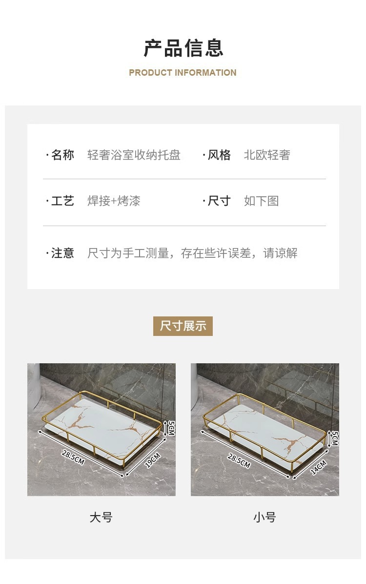 | Tamaño | bandeja rectangular grande de una sola capa - placa UV de oro blanco, bandeja rectangular grande de una sola capa - placa UV de oro negro, bandeja rectangular pequeña de una sola capa - placa UV de oro blanco, bandeja rectangular pequeña de una sola capa - placa UV de oro negro |